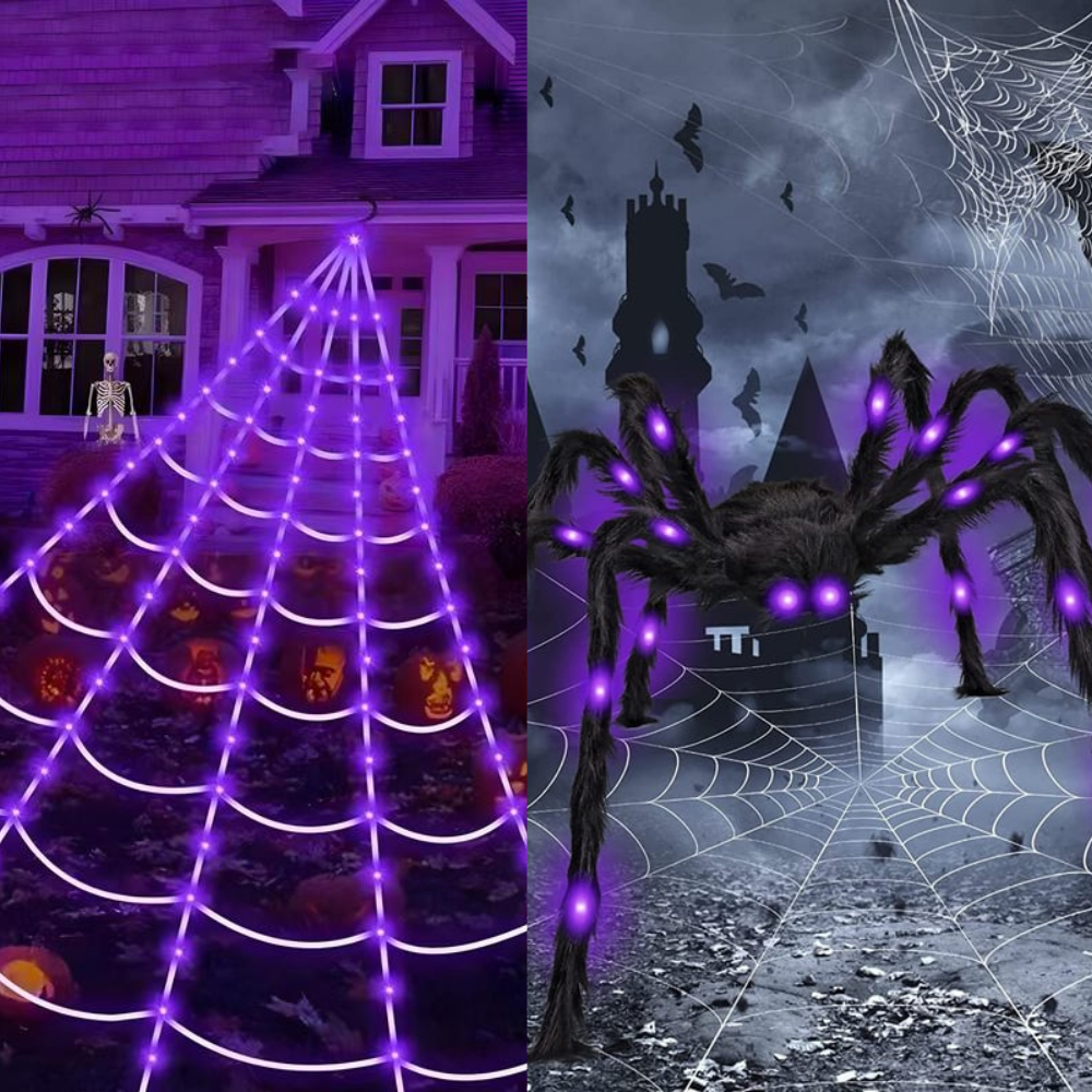 【Material Quality】: Constructed from durable ABS and fabric, the spider web light is designed to withstand the rigors of seasonal outdoor use.